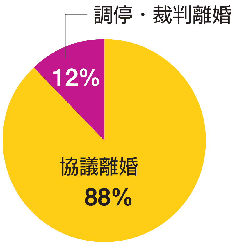 日本の離婚の割合は、協議離婚88%、調停・裁判離婚12%(*3)です。